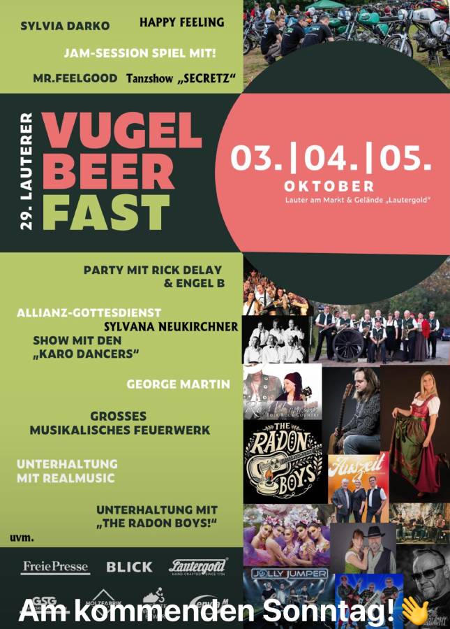 Sei es die Wahl der Lauterer Vugelbeerprinzessin, Festzeltgaudi, Kinderfest, buntes Markttreiben, Handwerkermarkt oder verschiedenste Schauvorführungen und Ausstellungen – dieses Fest ist so bunt wie der Herbst. Königinnen geben sich die Ehre, Schützen stellen ihr Können unter Beweis, Klöpplerinnen beeindrucken mit feiner Kunst aus feinen Fäden. Für die Kleinsten wurde ein Kinderfest auf die Beine gestellt.